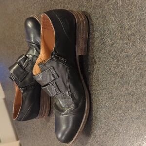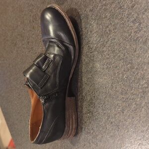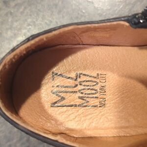 Black leather loafers by Miz Mooz. Side zip. EUC. Incredibly soft leather. Size 8.