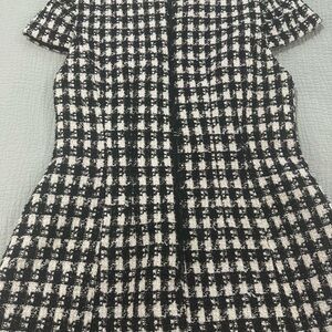 Chic mini dress with classic houndstooth pattern. Features a stylish collar and short sleeves. Perfect for versatile styling. Worn once. Smoke free and pet free home. In EUC