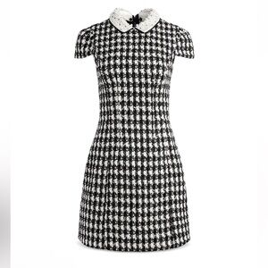Alice + Olivia Black and White Velia Houndstooth Mini Dress