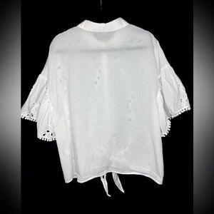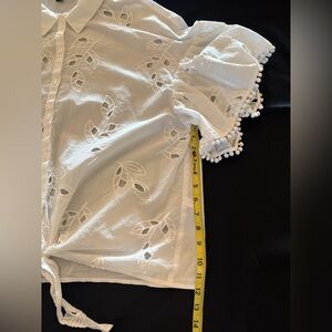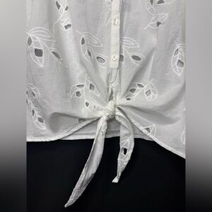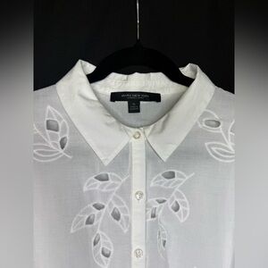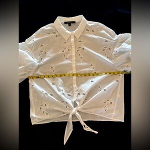 Marc New York Collard White Leaf Embroidered Blouse w/ Bell Sleeves.
