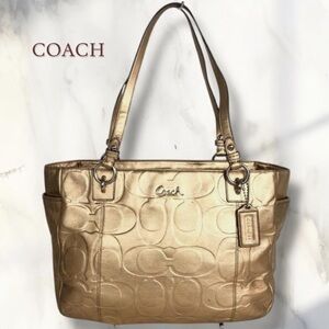 Shimmer with this Coach tote. Metallic gold finish. Stylish and spacious.