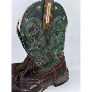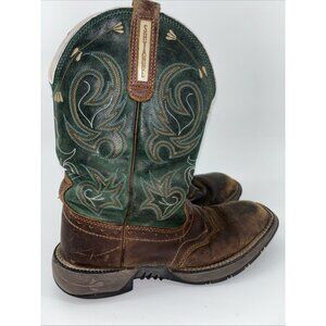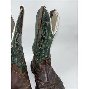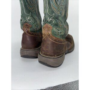 Shyanne Womens Size 9.5 Brown Green Leather Square Toe Cowboy Stockman Boots