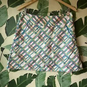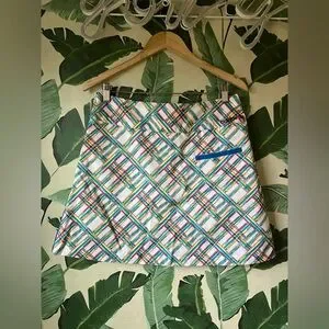 Adidas women's golf skort multicolor geometric checker stripe pattern 4