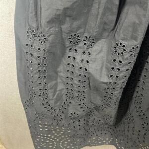 J. Crew Womens Size 8 V-neck smocked-waist dress eyelet cotton poplin Black NWT