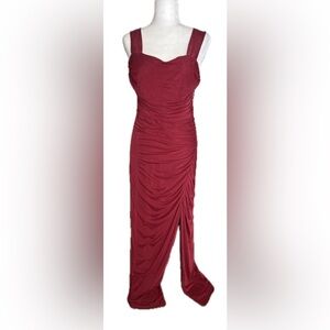 Firfig Wine Red Square Neck Ruched Maxi Dress Slit Floor Length Black Tie Large