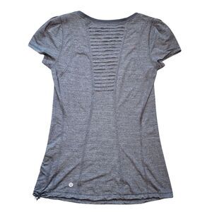 Lululemon Back On Track Short Sleeve Tech in Coal color, size 4. This top has a cinch-able waist to customize your fit!
