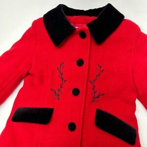 London Fog Red Wool Blend Coat with Black Velvet Trim Embroidered Details 3T
