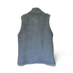 Cozy blue fleece vest with zip closure. Perfect for layering.