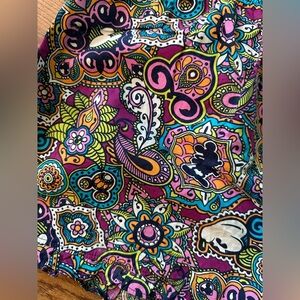 Paisley print. Vinyl Mickey on top, ruffles on sorts. Preloved condition, no visible signs of major wear.