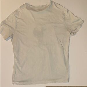 • Flaw Note: There is a small, light yellowish stain on the front lower right side (see photos for detail). Otherwise, the shirt is in great shape with a nice graphic with light cracking .