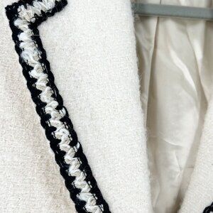 Color: Cream with black trim and gold buttons