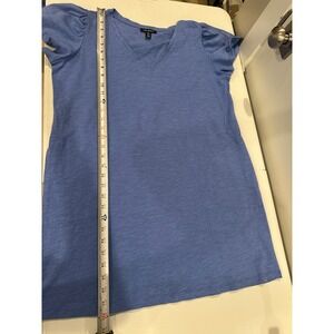 Tribal Blue V Neck Puff Sleeve T Shirt Dress Casual Everyday Comfort size M