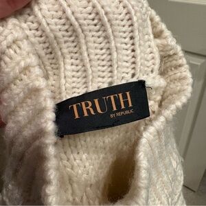 TRUTH BY REPUBLIC Cream Chunky Cable Knit Rose Sweater Size XL Cropped Cozy