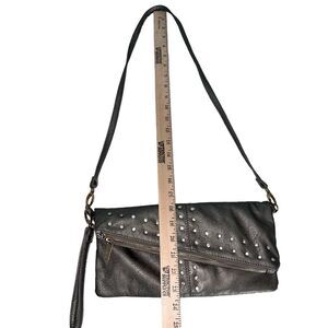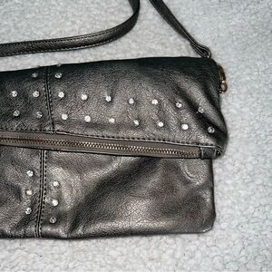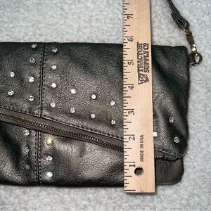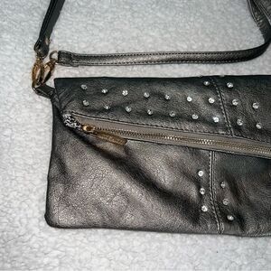 Imoshion Gunmetal Pewter Gray Fold-over Shoulder Bag or Clutch Rhinestones