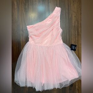 Lulu’s Exceptional Moments Light Pink Swiss Dot One Shoulder Mini Dress Size M