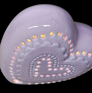 Charming heart-shaped ceramic decor LED Features a delicate pink hue with intricate cut-out design. Perfect for adding a warm glow to any space.