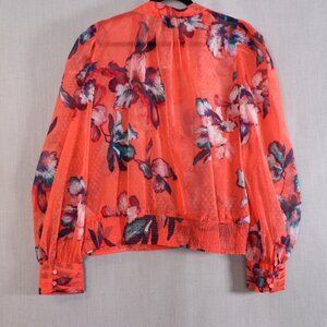 C Wonder by Christian Siriano Sheer Organza Jacket 1X Terracotta Floral Zip Front