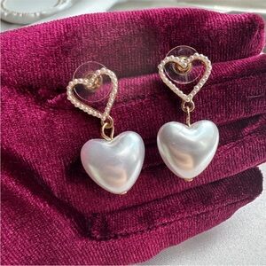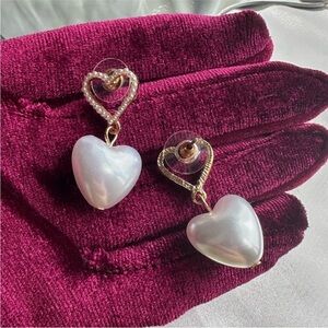 Gold and Pearl Heart Earrings