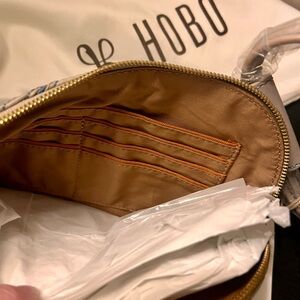 NWT HOBO wristlet in beige leather with blue accents. Comes with dust bag!