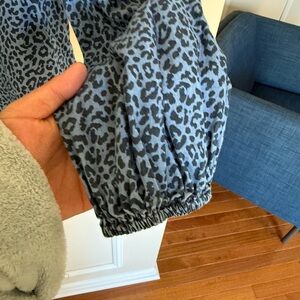 J. Crew Dark Blue Women’s Sz Small Ruffle Front Blouse Leopard Chambray Preppy