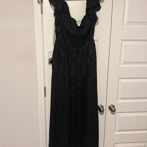 Chic strapless gown with a subtle floral pattern. Features a stylish slit for added elegance. Came later than the event so never got to wear it, Sadly. It’s stunning!