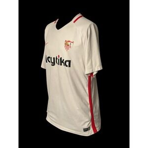 The Nike Sevilla 2018 2019 Home Football Shirt is a men's size large soccer jersey featuring the team's traditional colors and design. Made by the renowned sports brand Nike, this shirt is perfect for fans of Sevilla looking to show their support during matches or casual wear.