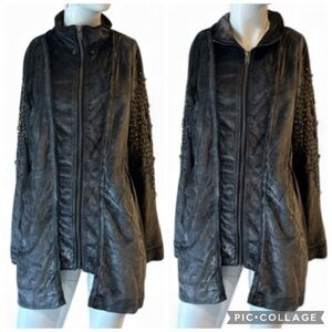 Chic hard to find boho velvet jacket with studs, grommets and other embellishments on both sleeves, side pockets and zipper closure.