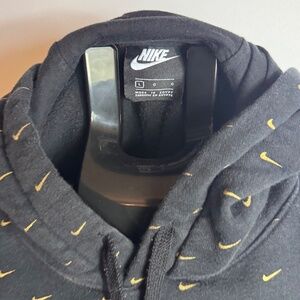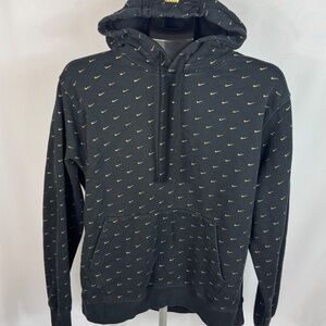 Nike All Over Swoosh Hoodie Black Gold Men’s Large Pullover Sweatshirt