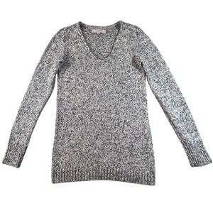 LOFT Speckled V Neck Long Sleeve Sweater Knit Tunic Top XS Cozy Soft Pullover