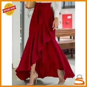 Women's Plaid Mermaid Maxi Skirt A-Line Ruffle Hem Long Skirt