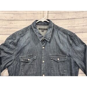 John Varvatos USA Mens Denim Pearl Snap Shirt Size M Western Dark Wash Cotton