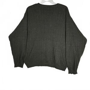 IZOD Men's XXL V-Neck Sweater 100% Cotton Olive Green Ribbed Cable Knit