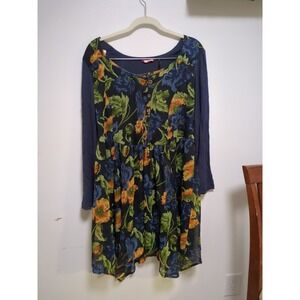 joe browns plus size Blue And Orange Floral Ling Sleeve Dress