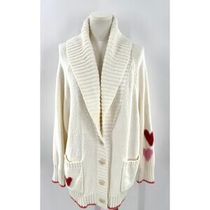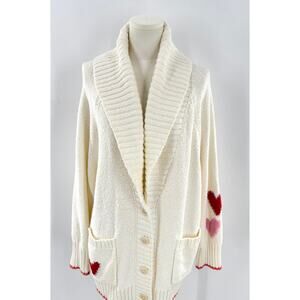 Maeve Anthropologie White Heart Cardigan Cotton Knit Grandpa Cardi Large 2XL XXL