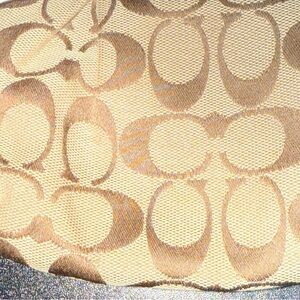 Vintage Coach Wristlet Wallet Taupe Signature Canvas White Leather Trim GUC