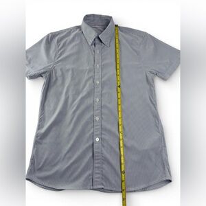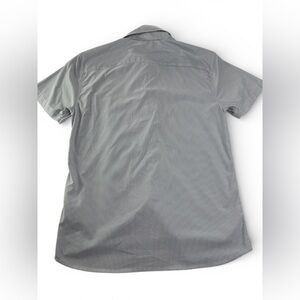 Abercrombie & Fitch short sleeve button-up shirt in gray and white pinstripe. Lightweight and perfect for casual or work wear.
