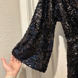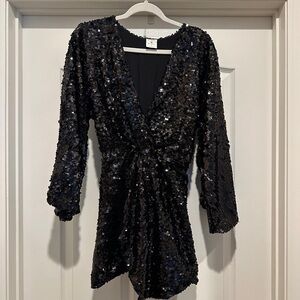 By Together Black Twist Front Sequin Long Sleeve Dress - Size Small