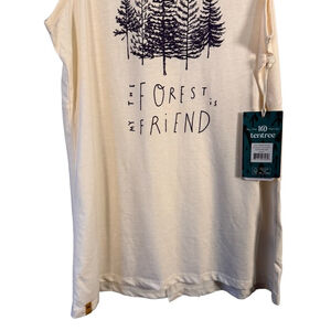 Brand new with tags tentree sleeveless tunic tank in a soft natural cream shade. Features a minimalist forest graphic with the phrase “The Forest Is My Friend” on the front, paired with a relaxed, longer-length silhouette that works beautifully as a tunic-style tank.
