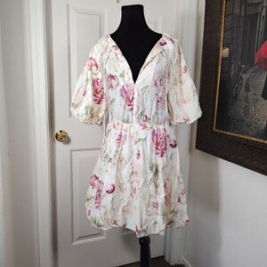 H&M Bubble Hem Floral Dress In Cream/Pink floral Size Small