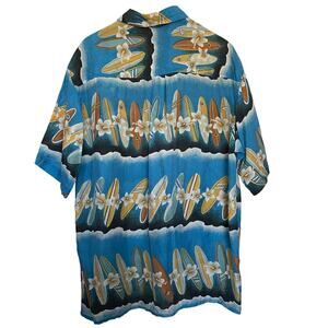 Vtg Montage Tropics Hawaiian Shirt 100% Silk Surf Boards Hibiscus Size XL