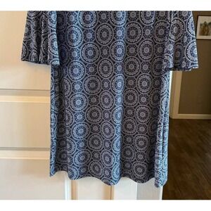 Tommy Hilfiger Medallion Print Scoop Neck Navy White Bell Sleeve Dress-Size 12