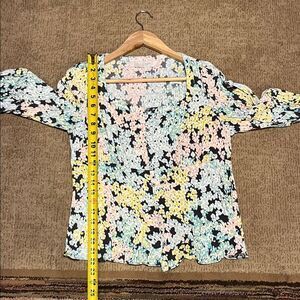 Vibrant floral blouse with a mix of colors. Features long sleeves and a flattering neckline. Ideal for casual outings.