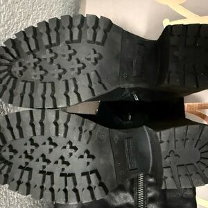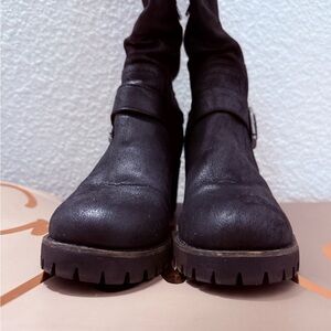 Stylish heeled boots with side zipper. Buckle detail adds flair. Perfect for any occasion. Size 8.
