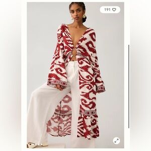 NWT Anthropologie size M/L kaftan Stylish swim coverup with bold red and white pattern. Features a ring detail at the front. Long sleeves and flowing design.