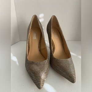 metallic pumps, glitter heels, champagne heels, pewter heels, wedding guest shoes, party shoes, evening heels, cocktail, holiday shoes, stiletto, classic pointed toe