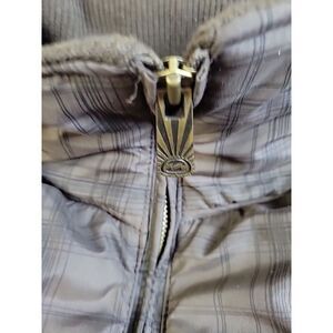 Billabong Mens Quilted Puffer Zip Up Jacket Coat Size M Brown Plaid Fleece Lined