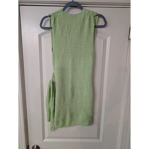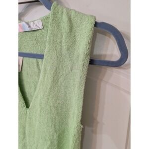 Keywords: knit dress, wrap dress, sleeveless, textured, v-neck, self-tie, lime green, FP Beach, boho, casual, resortwear, summer knit, lightweight