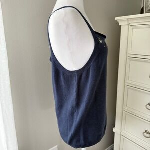 Liz Claiborne Navy Blue Embroidered Floral Velvet Trim Knit Tank Top Women's L
