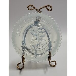 Vintage Mosser Glass Pee Wee Clown G Blue w. Matching All the World Plate