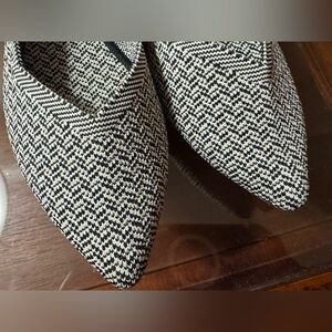 Rothy's Classic Black and Tan Woven Pointed Patterned Flats - Great Condition!